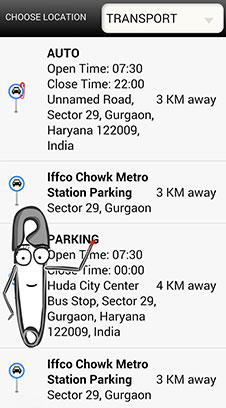 SafetiPin uses your current location as a starting point to show nearby points of interest. On the basis of your current location it gives you a list of different types of establishments around you. Tap on a category of your interest and it returns a list of those that are nearby. Make a selection, and SafetiPin shows you a map with the route to your selection, as well as contact information.